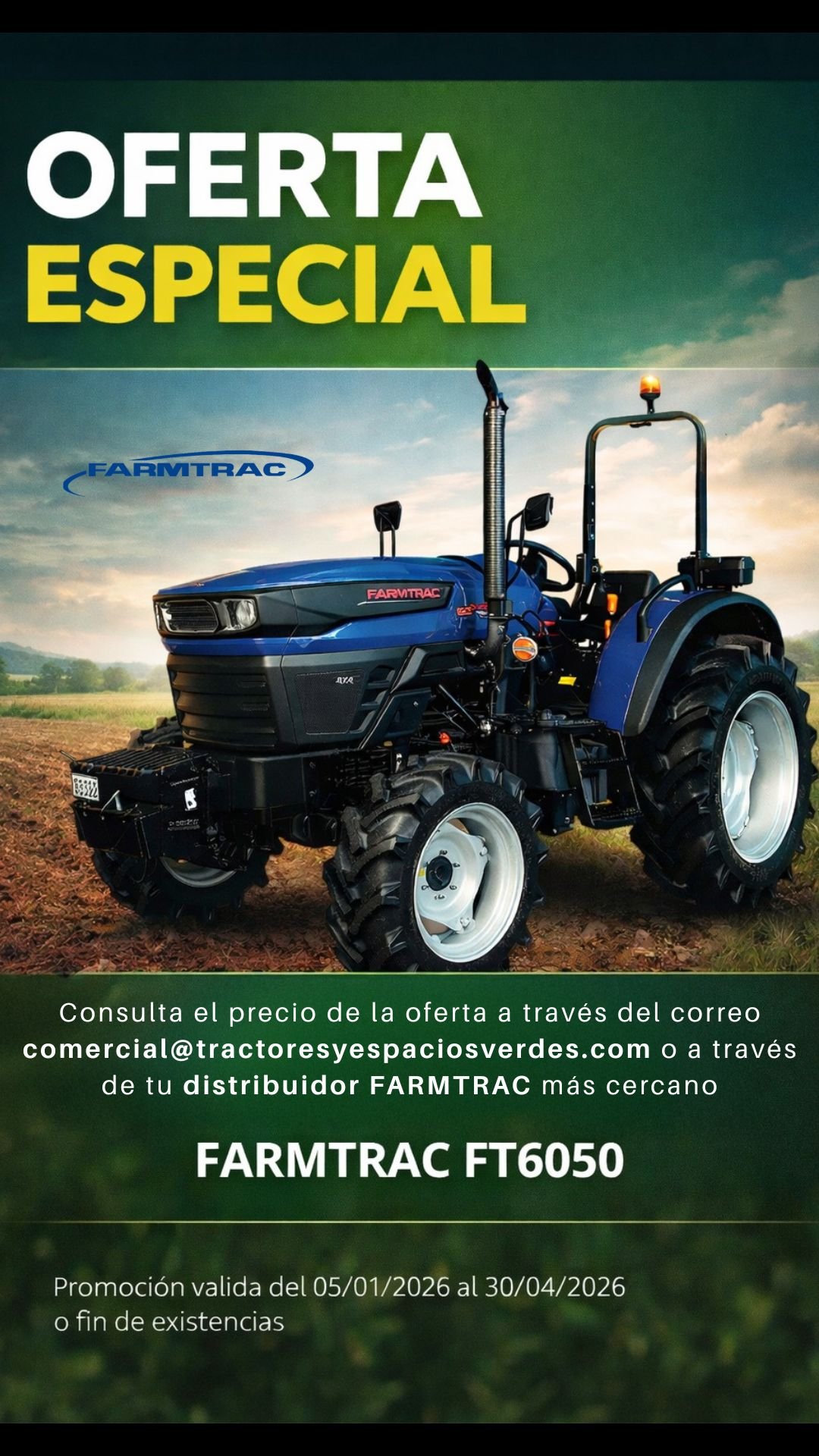 El tractor FT 6050 está desarrollado para realizar servicios pesados gracias a su eje delantero que le permite trabajar con cargadores frontales, ofreciendo una capacidad de carga de 1.500 kg. Posee una gran potencia de remolque capaz de soportar hasta 2 T. Además viene con un motor económico que brinda un consumo reducido de combustible en tareas diarias y con un cargador frontal que consume sólo 4 l/h. Este tractor viene con un bastidor plegable o una versión de cabina con tracción en las 4 ruedas.